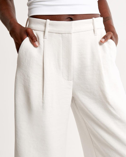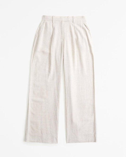 Abercrombie & Fitch Calça Curve Love A&F Harper com mistura de linho sob medida
