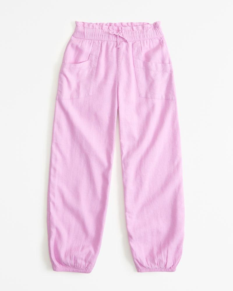 Joggers de fácil ajuste em tecido macio de mistura de linho, com cintura ajustável estilo pull-on, bolsos e punhos apertados. Importado.