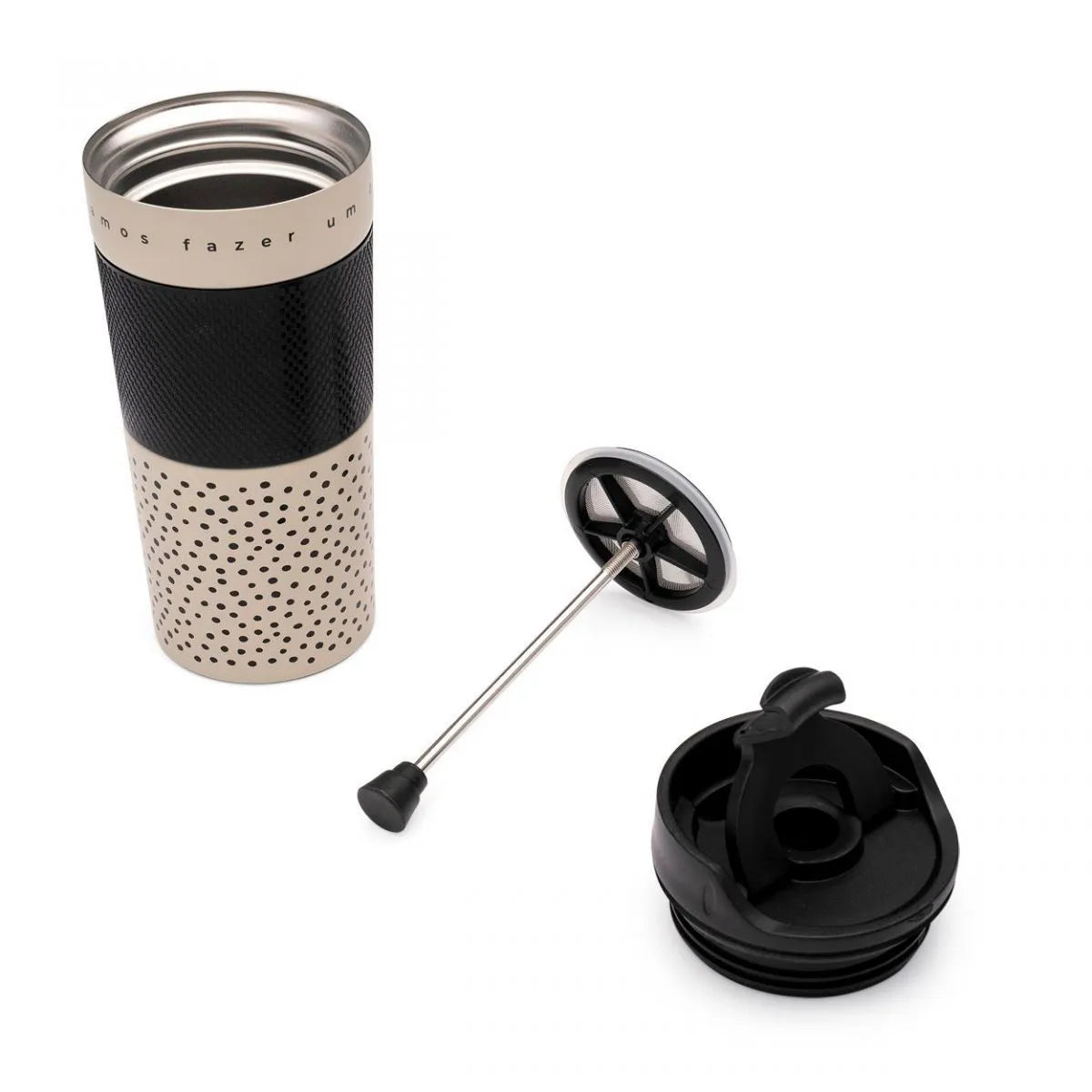 O Copo Prensa Francesa Fazer Um Bom Café (360 ml) é praticamente uma máquina de café portátil e o melhor de tudo é que dá pra beber nela mesmo, pois já é um copo.