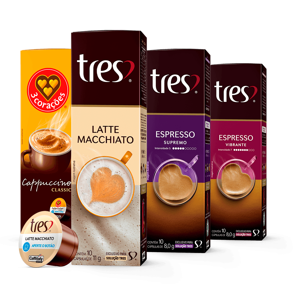 O Kit Best Sellers TRES 3 Corações é um combo composto pelas nossas cápsulas de cafés espressos e multibebidas mais vendidas, você vai se apaixonar! Aproveite essa oferta exclusiva Mercafé. Contém 40 CÁPSULAS (4 caixas com 10 cápsulas cada) dos seguintes sabores: 1 Cartucho com 10 Cápsulas de Latte Macchiato 1 Cartucho com 10 Cápsulas de Cappuccino Classic 3 Corações 1 Cartucho com 10 Cápsulas de Café Espresso Vibrante 1 Cartucho com 10 Cápsulas de Café Espresso Supremo *Para uso exclusivo no sistema TRES®