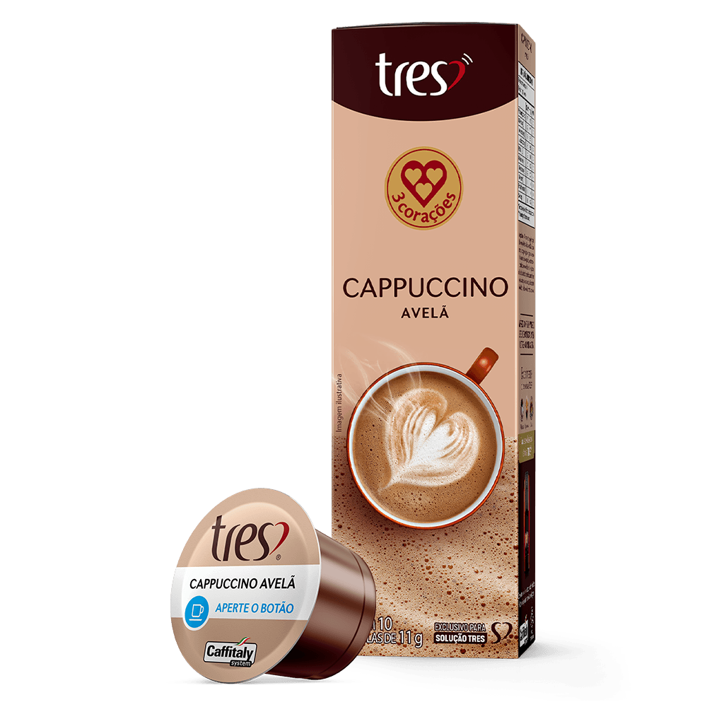 O Kit Cappuccino Lovers II com 40 Cápsulas TRES 3 Corações reúne os 3 sabores dos cappuccinos 3 Corações para você que é viciado no inconfundível cappuccino 3 Corações, contém 40 CÁPSULAS (4 caixas com 10 cápsulas cada) nos seguintes sabores: 1 Cartuchos com 10 Cápsulas de Cappuccino Classic 3 Corações 2 Cartucho com 10 Cápsulas de Cappuccino Doce de Leite Havanna 1 Cartucho com 10 Cápsulas de Cappuccino Avelã *Para uso exclusivo no sistema TRES®